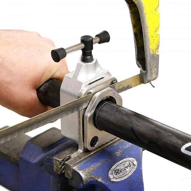 Get your fork steerer tube cut down to the right size, with this heavyweight, Steerer Tube Saw Guide. Having to do things by eye often leads to cutting off too much, or an uneven result. The Jobsworth Steerer Tube Guide allows you to clamp on the the steerer and measure your efforts to the mm. Compatible steerer sizes: 25.4 / 28.6 / 31.8mm threadless fork.